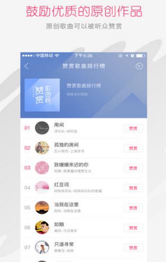 1、音乐人的原创单曲可被用户赞赏,乐迷可支持喜欢的音乐人的众筹。