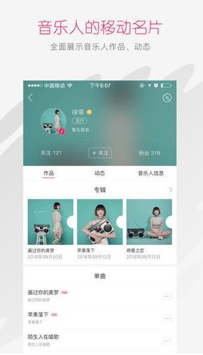 1、风格标签将由入驻时上传的第一首歌决定,方便用户发现最酷、最新鲜的音乐。