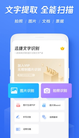 迅捷文字识别是一款很好用的扫描识别软件,它支持全能扫描拍照识别翻译技术,支持文字提取以及文字编辑功能、拍照翻译。使用该软件就能实现照片扫描、文件扫描、文字提取、文字编辑等工作,让图片转换成文字识别校对变得更加简单方便。